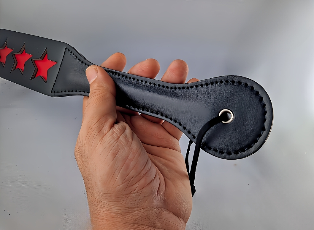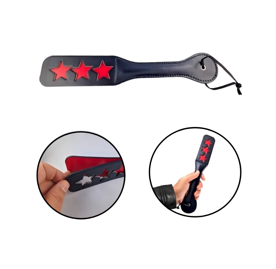 BDSM Klatsche Fetisch Peitsche mit 3 Sterne Motiv.