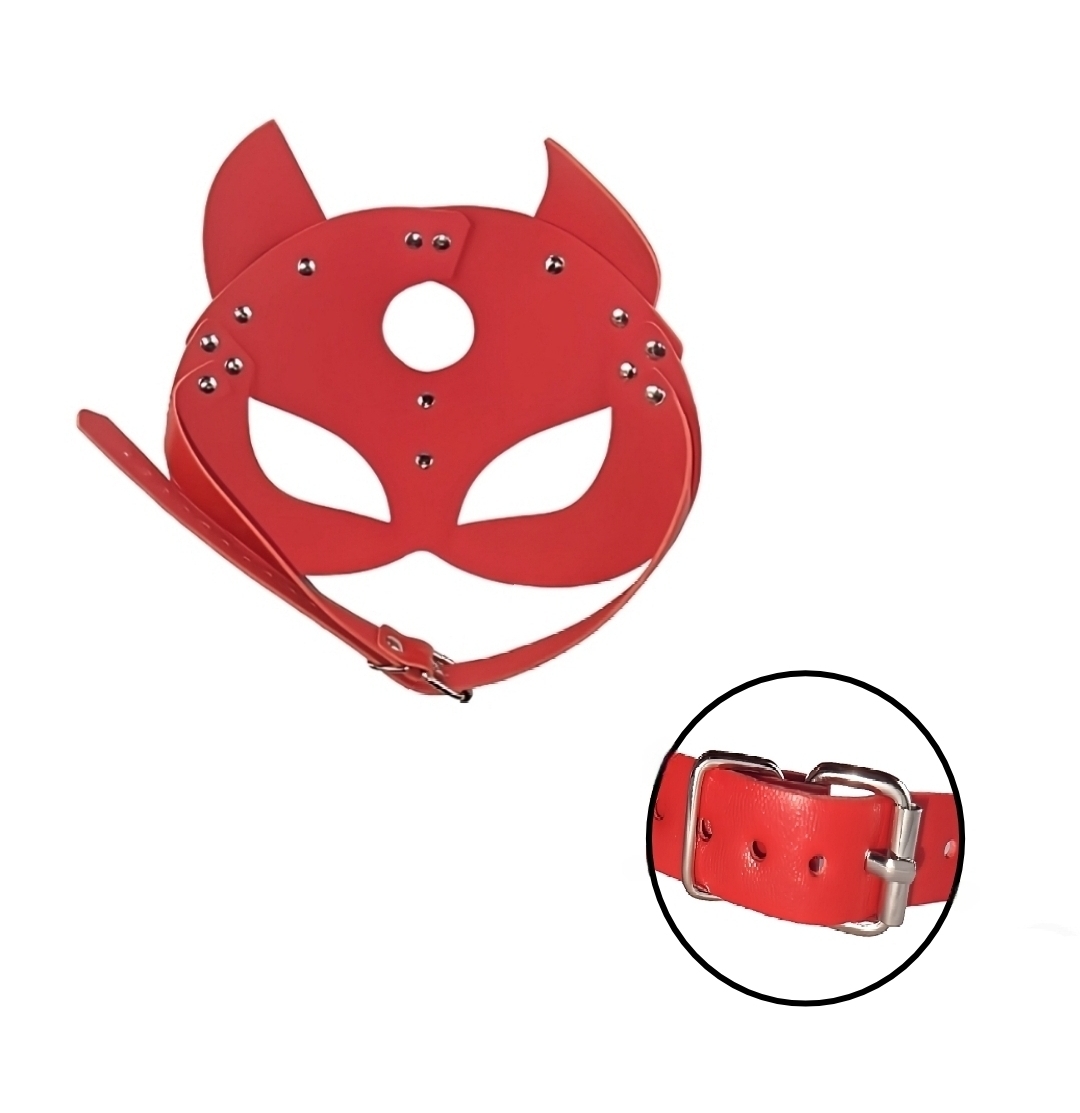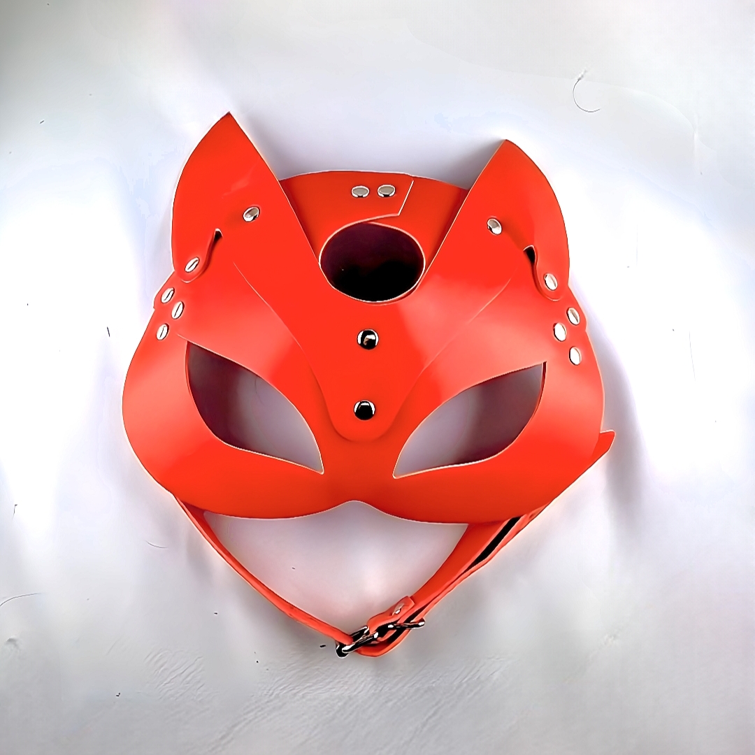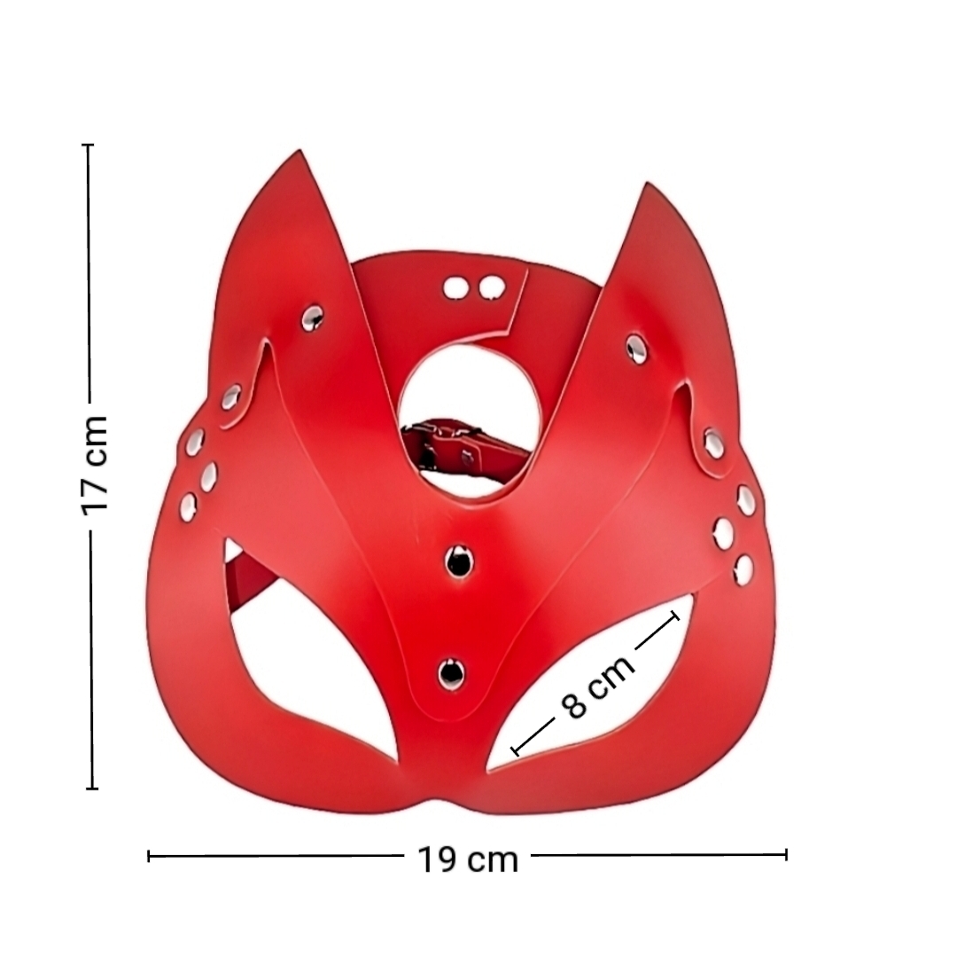 Damen Katzenmaske mit Ohren Rot Katzen Fetisch BDSM Maske Verstellbar.