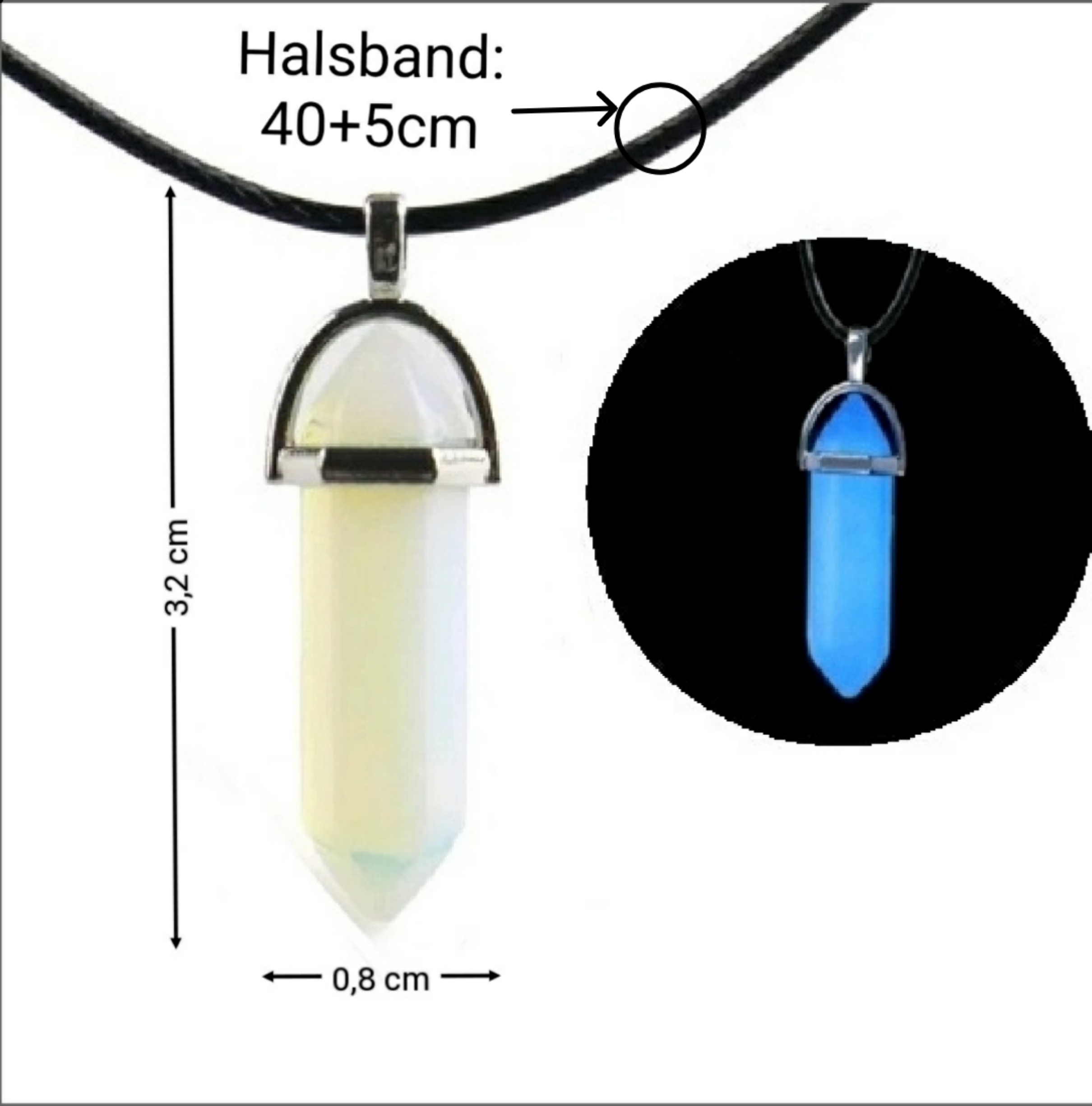 Die Anhänger leuchten im Dunkeln in Farbe Blau,Grün oder Rot nachdem sie vorher vom Licht (z.B.auch Taschenlampe vom Handy) oder Sonne angestrahlt worden ist.