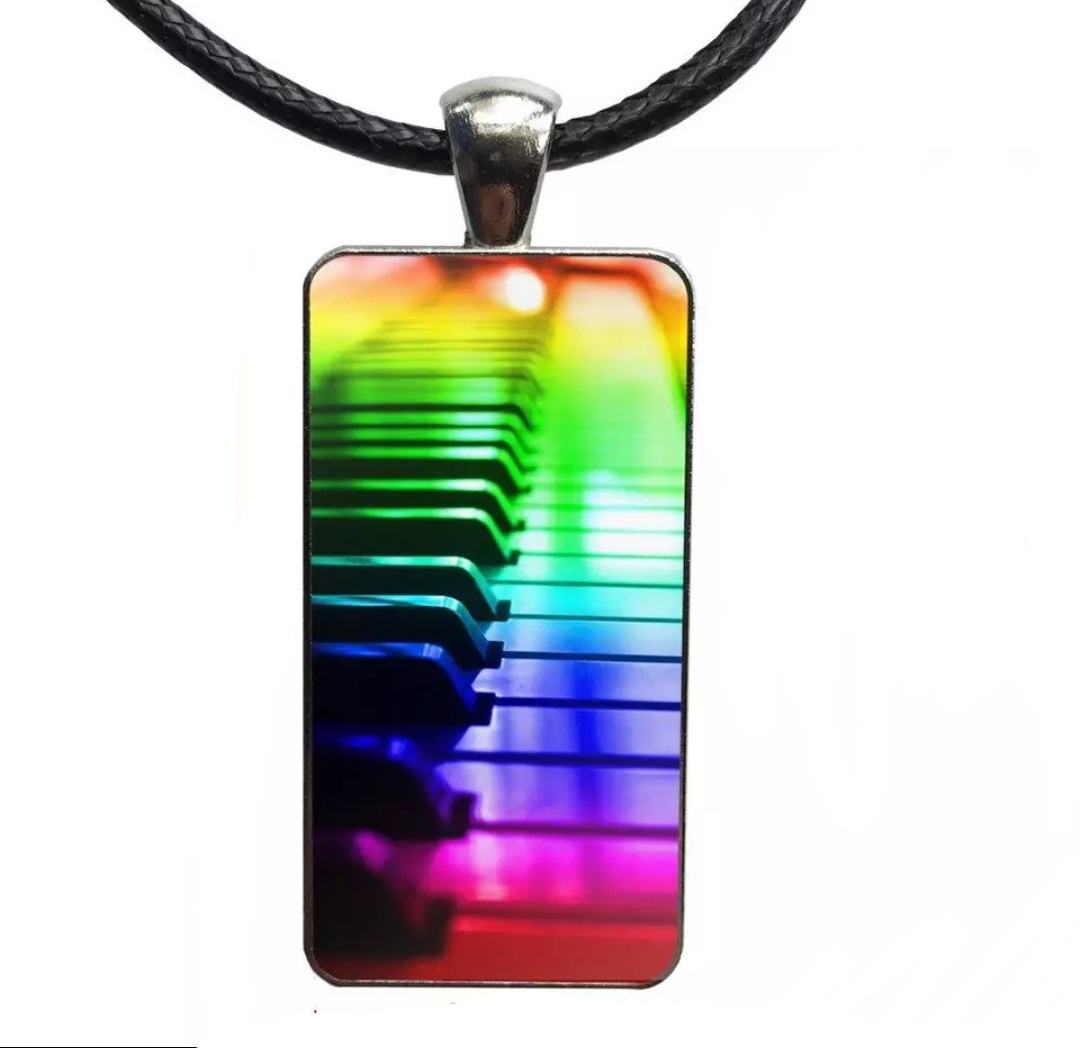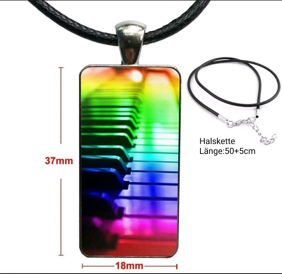 Regenbogen Klavier Musikmotiv Anhänger Modeschmuck Farbig Rechteck Klaviertasten